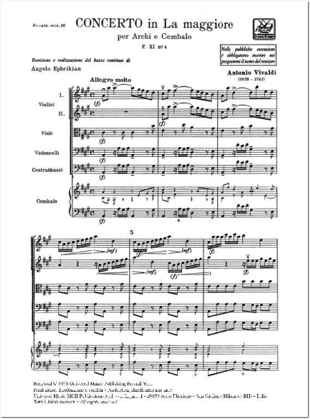Concerto La Maggiore per Archi RV 158/P 235/F XI:4 (Partitur)