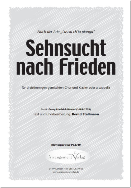 Nach der Arie „Lascia ch´io pianga“ aus der Oper „Rinaldo“ von Georg Friedrich Händel. Die Musik komponierte er bereits 1705, berühmt wurde sie jedoch erst als Klagelied in seiner 1711 in London uraufgeführten Oper Rinaldo. Heute gehört sie zu den populärsten Melodien der klassischen Musik. Mit neuem deutschen Text von Bernd Stallmann in dreistimmiger Fassung!