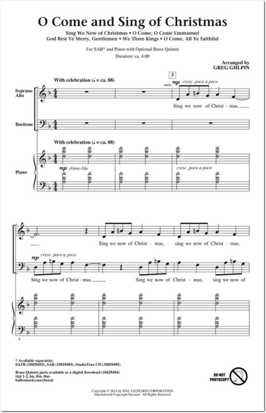 Celebrate the season with this delightful medley using some of our favorite Christmas melodies. Unique in its spiritedness in a minor key, the piece builds to a majestic finish in a major key for the final carol, making this a wonderful opening selection or grand finale for your concert. The optional brass quintet accompaniment will add extra Christmas joy to your performance. Duration: ca. 4:00