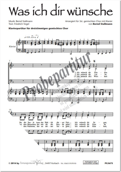 Was ich dir wünsche - 3-stimmige Ausgabe für gemischten Chor (Partitur)