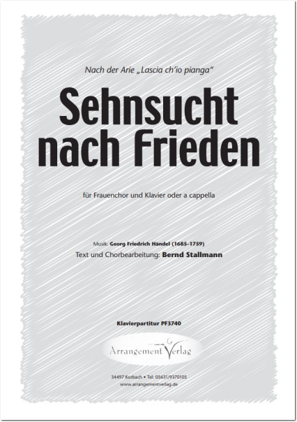 Nach der Arie „Lascia ch´io pianga“ aus der Oper „Rinaldo“ von Georg Friedrich Händel. Die Musik komponierte er bereits 1705, berühmt wurde sie jedoch erst als Klagelied in seiner 1711 in London uraufgeführten Oper Rinaldo. Heute gehört sie zu den populärsten Melodien der klassischen Musik. Mit neuem deutschen Text von Bernd Stallmann in dreistimmiger Fassung!