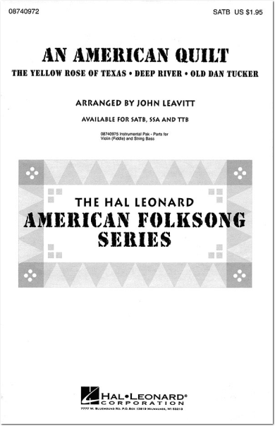 This suite of three favorite American folksongs captures all the fun and emotion of our pioneer past. Includes: The Yellow Rose of Texas, Deep River, Old Dan Tucker. Optional violin and string bass. Available: SATB, SSA, TTB,Instrumental Pak. Performance Time: Approx. 6:15.