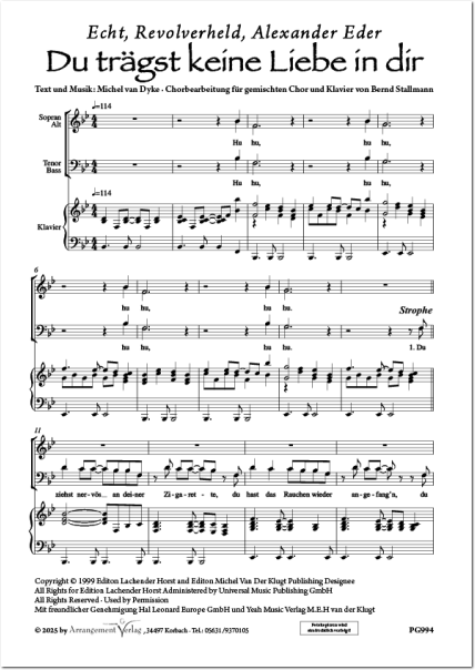 Du trägst keine Liebe in dir - SATB und Klavier (Chorpartitur)