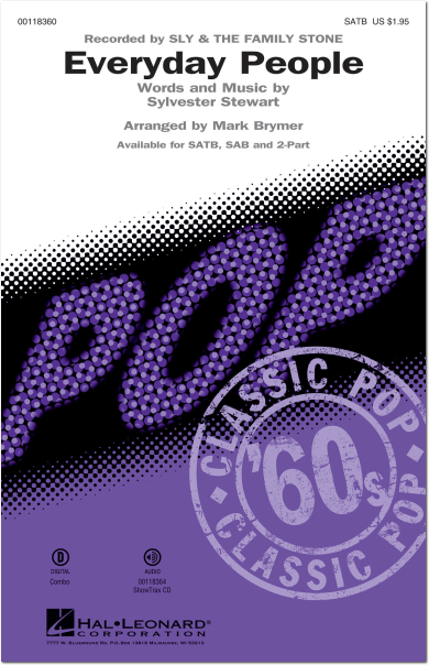 Harmonies and melodies layer above the irresistible bass line in this top hit by Sly and the Family Stone that celebrates the diversity and connectedness of us all. A celebration of rhythm and soul! Available separately: SATB, SAB, 2-Part, ShowTrax CD. Combo parts (tpt 1, tpt 2, tsx, tbn, bsx, syn, gtr, bs, drm) available as a digital download. Duration: 2:40.