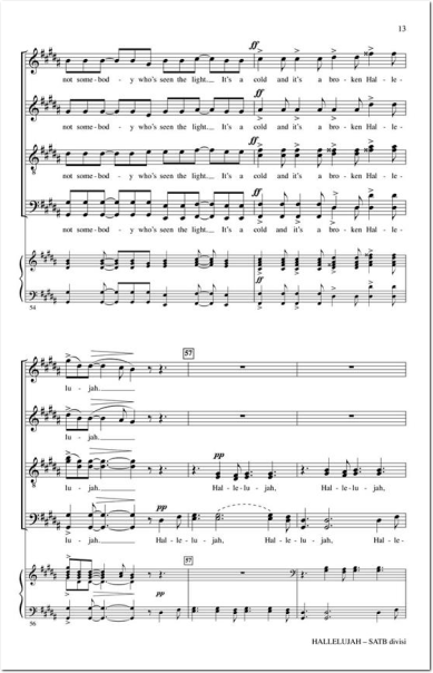 Leonard Cohen's classic song has been covered hundreds of times. This setting for a cappella voices is striking for its range of texture, dynamic contrast and sheer harmonic beauty.