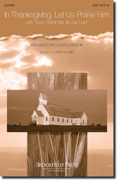 Lloyd Larson pairs an opening a cappella treatment of Now Thank We All Our God with an accompanied arrangement of a Claire Cloninger thanksgiving text based on the NETTLETON hymn tune. The main theme, “Inthanksgiving, let us praise Him; in thanksgiving, let us sing” is heard throughout as the music builds to the final “Amen.” With optional flute and oboe.