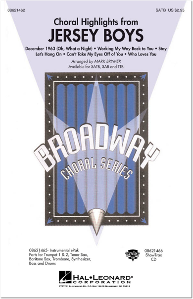 Based on the inspiring rags-to-riches story of Frankie Valli & The Four Seasons, this show won the 2006 Tony Award for Best Musical. This 8-minute medley for SATB choir captures the essence of the Broadway version and includes: Can't Take My Eyes Off Of You, December 1963, Let's Hang On, Stay, Who Loves You and Working My Way Back to You . Performance Time: Approx. 8:20.