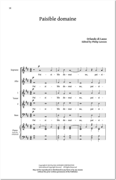 Orlando di Lasso was a Franco-Flemish composer of the late Renaissance known for his mature polyphonic style. Equally adept in many languages and both sacred and secular forms, his compositions remain a staple of the modern choral repertoire. This collection of French chansons includes five representative works and is an excellent value! Includes: Bonjour mon Coeur, Dessus le marche, Paisible domaine, Toutes le nuits, Vignon vignette.
