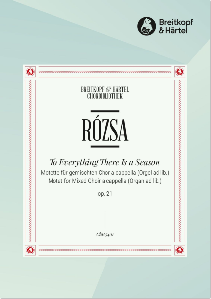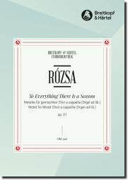 Dass Miklós Rózsa neben Filmmusiken, Orchesterwerken und Kammermusik auch Chorwerke schrieb, ist heute nur noch wenigen bekannt. Am bekanntesten ist noch die Motette „To Everything There Is a Season“ op. 21 für gemischten Chor auf einen Text aus dem 3. Kapitel des Buchs der Prediger. Rózsa wählte diesen 1945 als Reaktion auf das bevorstehende Ende des Zweiten Weltkriegs und hängte an den letzten Vers „A time for war, and a time for peace“ ein freudvolles „Alleluia“ an. Drei Jahre später erfolgte die Uraufführung durch den Chor der First Methodist Church of Hollywood, 1951 wurde das Stück bei Breitkopf & Härtel verlegt.