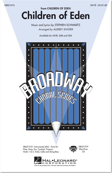This rich ballad from the musical Children of Eden by Stephen Schwartz is an uplifting selection for graduation or other programs.Available separately: SATB, SAB, SSA, Instrumental ePak (parts for Flute, Harp, Sus. Cymbal,Timpani, Violin 1 & 2, Viola, Cello and String Bass) and ShowTrax CD. Performance Time: Approx. 3:20