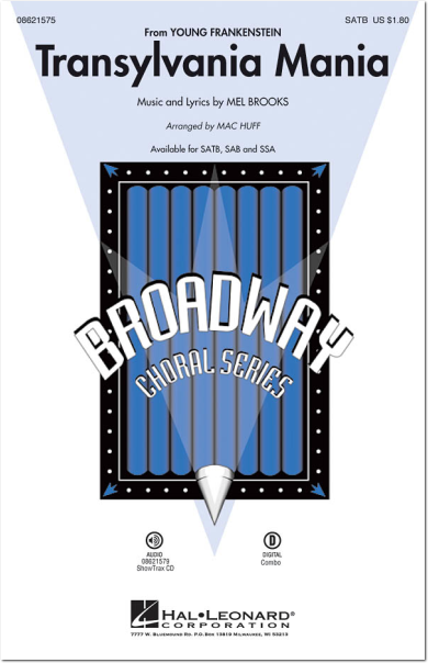 From the Mel Brooks “monster” musical comedy, this madcap song is a hilarious take on the Frankenstein (that's “Fronkensteen”) legend. A great choice for choirs of all ages and fantastic audienceentertainment! Available separately: SATB, SAB, SSA, ShowTrax CD. Combo parts available digitally (cl, tpt 1, tpt 2, tsx, tbn, syn, gtr, b, dm). Duration: ca. 2:00.