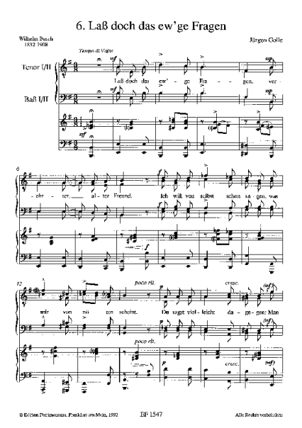Laß doch das ew'ge Fragen (Nr. 6 aus: 7 heitere Lieder) (4 & Klavier)