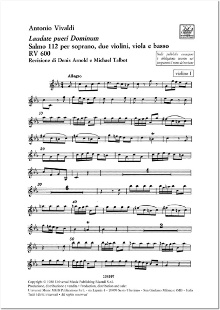 Laudate Pueri Dominum Salmo 112 RV 600 - Für Sopran, Streicher und BC (Stimmenset)