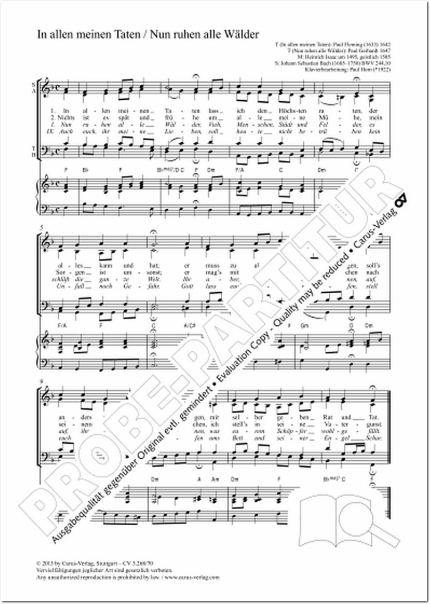 In allen meinen Taten / Nun ruhen alle Wälder - Partitur, Einzelausgabe aus Chorbuch