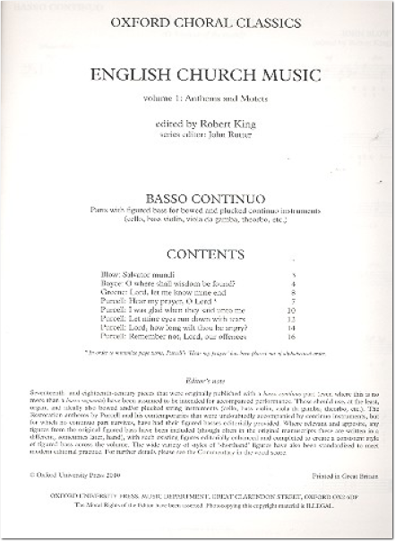 | Sammelalbum | English Church Music Vol. 1: Anthems And Motets (Basso continuo parts) |