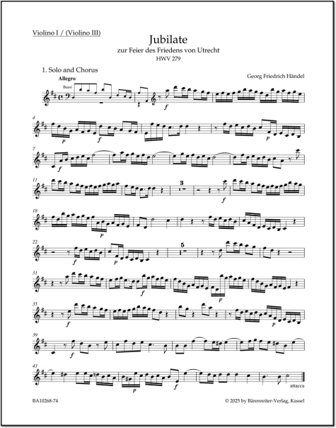 Jubilate zur Feier des Friedens von Utrecht HWV 279 "Utrechter Jubilate" (Violine 1)