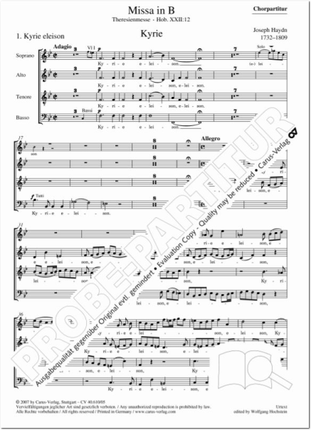 Theresienmesse in B Hob. XXII:12 (Chorpartitur)