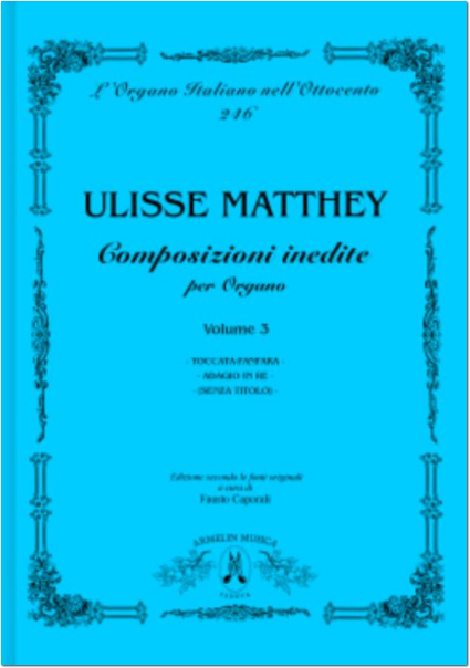 La produzione per organo di Ulisse Matthey (Torino 1876-Loreto 1947) risulta, alla luce delle composizioni inedite reperibili presso l’Archivio della Santa Casa di Loreto, né poca né insignificante; non solo essa offre una più che consistente silloge musicale, ma anche, sotto il profilo della tessitura compositiva, disegna un’estetica del suono organistico compiuta sia dal punto di vista formale che da quello dell’eloquio concertistico, tanto da potersi accostare, per quantità e qualità, a quella del nostro maggior esponente dell’arte organistica dell’epoca, Marco Enrico Bossi.