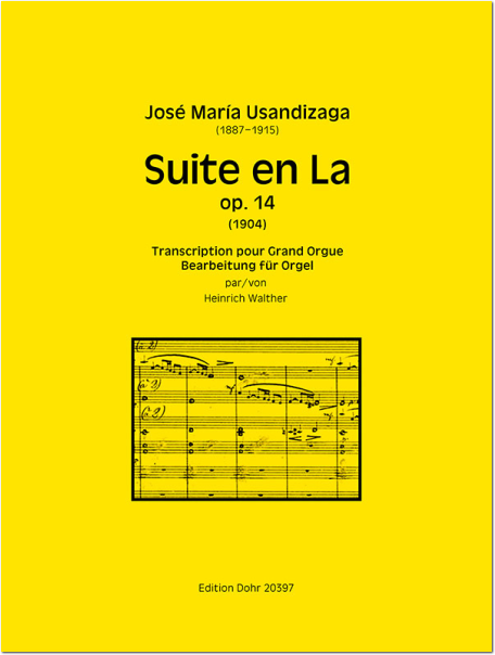 Am Ende des Manuskripts der Orchesterpartitur findet sich das Entstehungsdatum 23.–29. März 1904. Die Suite ist somit eine der ersten Früchte aus den Lehrjahren unter Vincent d’Indy in Paris. Die Uraufführung der originalen Orchesterfassung erfolgte im "Casino" von San Sebastián am 17. September 1904 mit dem "Orquesta del Gran Casino" unter der Leitung von Enrique Fernández Arbós. Die Rezension im Blatt "La Voz de Gipuzkoa" lobte die natürlichen und eingängigen Melodien ebenso wie die zeitgemäße und ungekünstelte Harmonik, und "dass dieses Werk der Schola Cantorum, wo der junge Komponist studiert, alle Ehre mache". Usandizaga selbst erstellte für die Suite auch eine Klavierfassung, das Final vierhändig. Der symphonische Charakter der Suite mit ihrer speziellen, feinsinnigen Instrumentierung gab dem Organisten Heinrich Walther den Impuls für die hier erscheinende Übertragung für große romantische Orgel.