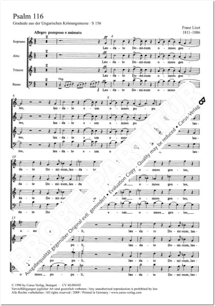 Der 116. Psalm (C-Dur) 'Laudate Dominum' für Chor & Orgel (Chorpartitur)