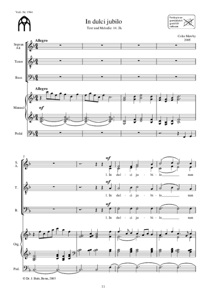 Besetzung: Orgel und Chor und Instr.