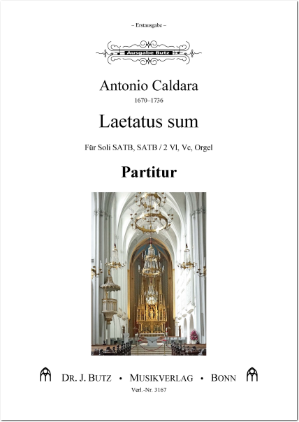 Die bisherigen Erstdruck-Editionen der Werke Caldaras im Butz-Verlag sind auf ein großes Echo gestoßen und haben neugierig gemacht auf die noch nicht veröffentlichten Schätze aus der Feder dieses Kosmopoliten der Barockzeit. Auch seine hier erstmals vorgelegte Vertonung des Psalms 122 stellt ein festliches, klangschönes und zugleich sehr praktikables Werk dar: Der leicht kontrapunktische Satz für Solisten und Chor gibt der Freude des Textes treffenden Ausdruck.