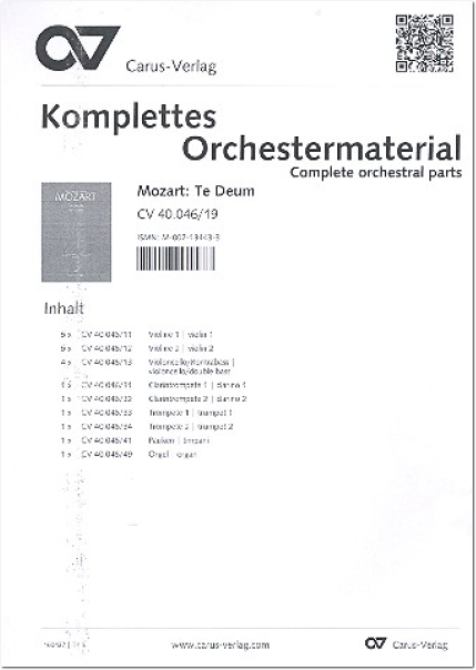 | Mozart | Te Deum C-Dur KV 141 (66b) (L) (Komplettes Orchestermaterial) | ||