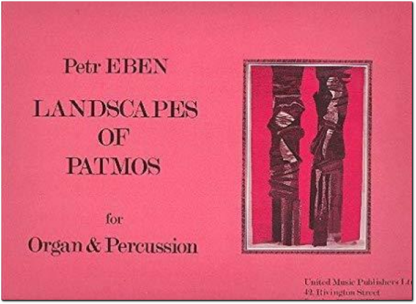 Landschaften vor Patmos für Orgel und Schlagzeug - 22 Min., 5 Sätze, schwer; 5 Toms, Crotales, 4 Bongos, Glocken, Becken, Gong, Glsp., 4 TBl., Xylo, 4 Cowbells, Tam.