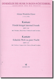 Die Praktische Ausgabe enthält zwei Kantaten: "Friede bringet tausend Freude" (GlWV 140) für 2 Violinen, Tenor-Solo, Violoncello und Continuo und "Schnöde Welt zu guter Nacht" (GlWV 143) für 2 Violinen, Sopran-Solo, Violoncello und Continuo. Der Partitur beigelegt sind die Stimmen Violine I, Violine II, Violoncello und Continuo.